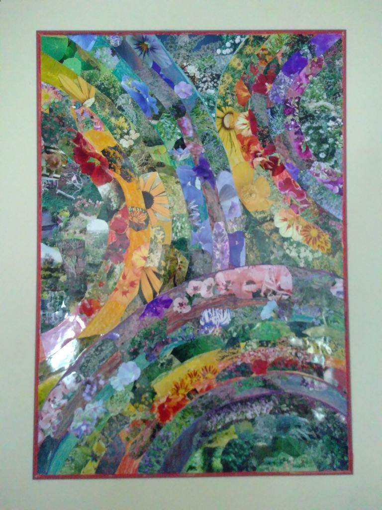 Meanwhile, to cheer us all up in these challenging times, here is a beautiful collage made by a friend of mine – she has used photographs taken over five years in a garden she created.